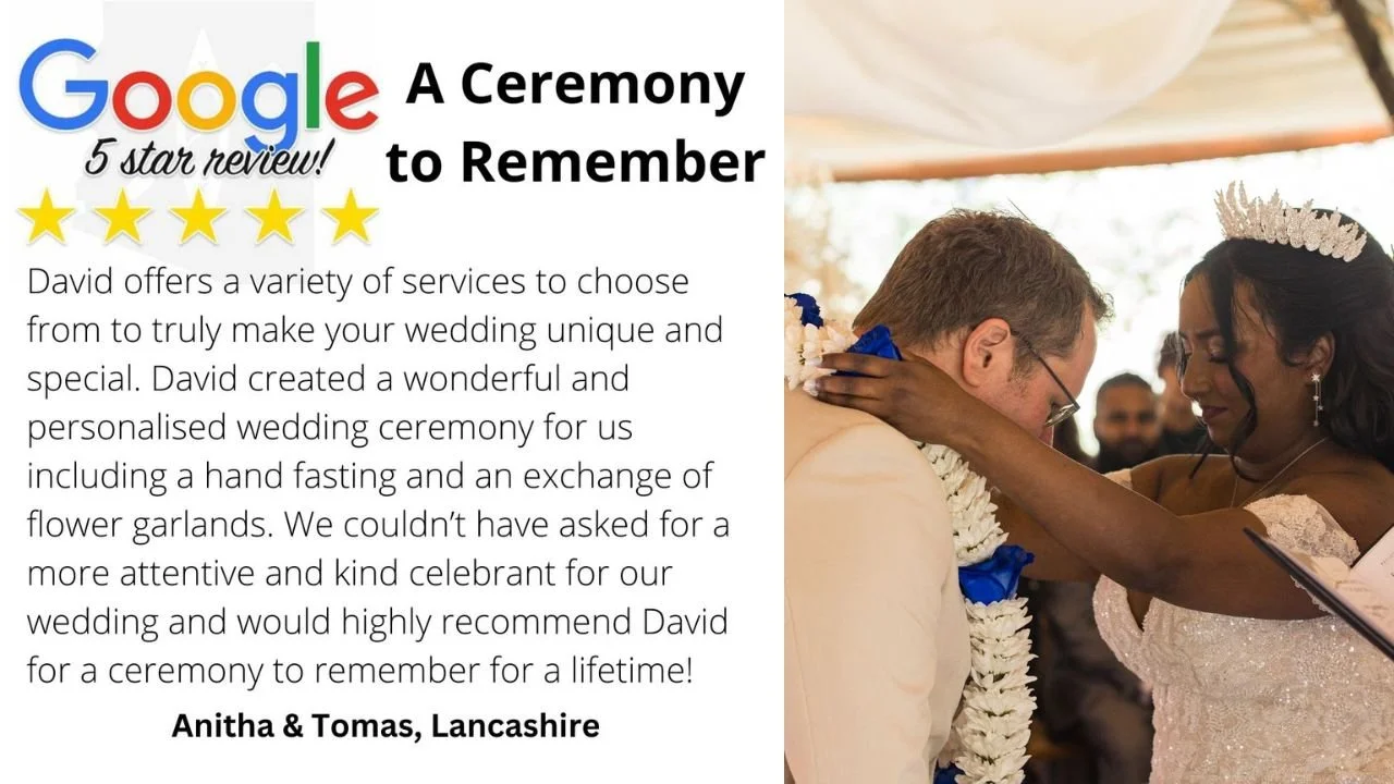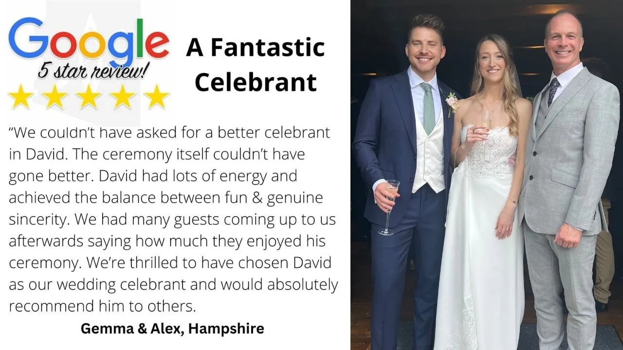 David is one of England’s most recommended Wedding Celebrants on Hitched.co.uk - The UK’s top wedding planning website.
